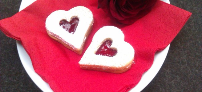 - Teig 1/2 cm dick ausrollen und Herzen ausstechen.