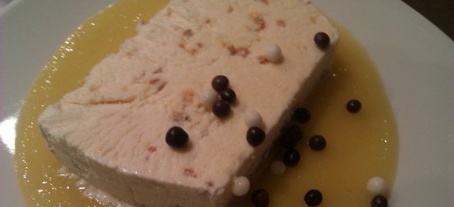 Ihr habt noch keine Idee für ein weihnachtliches Dessert? Na wie wäre es dann mit diesem hier…ein zartes Rum Krokant Parfait mit fruchtigem Mangospiegel. Nach einem üppigen Weihnachtsessen genau das richtige.