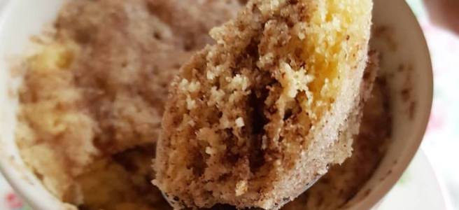 Herausgekommen ist ein warmer, fluffiger Zimt Swirl Tassenkuchen…