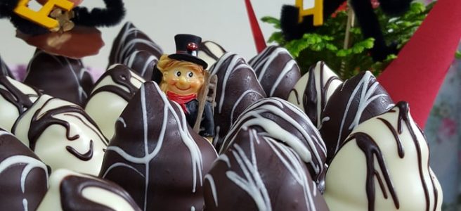 - Die Glücksküsschen mit der jeweils anderen Schokoladensorte verzieren.