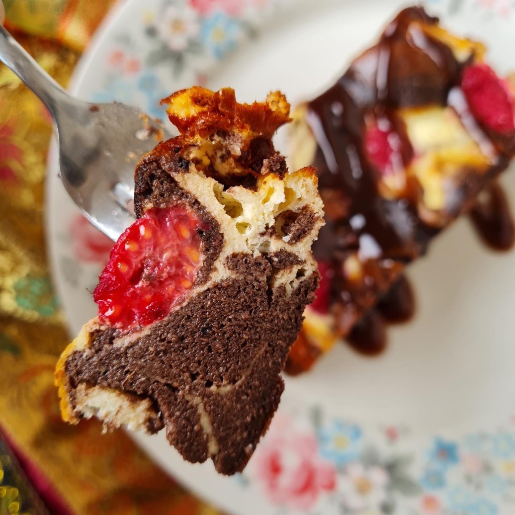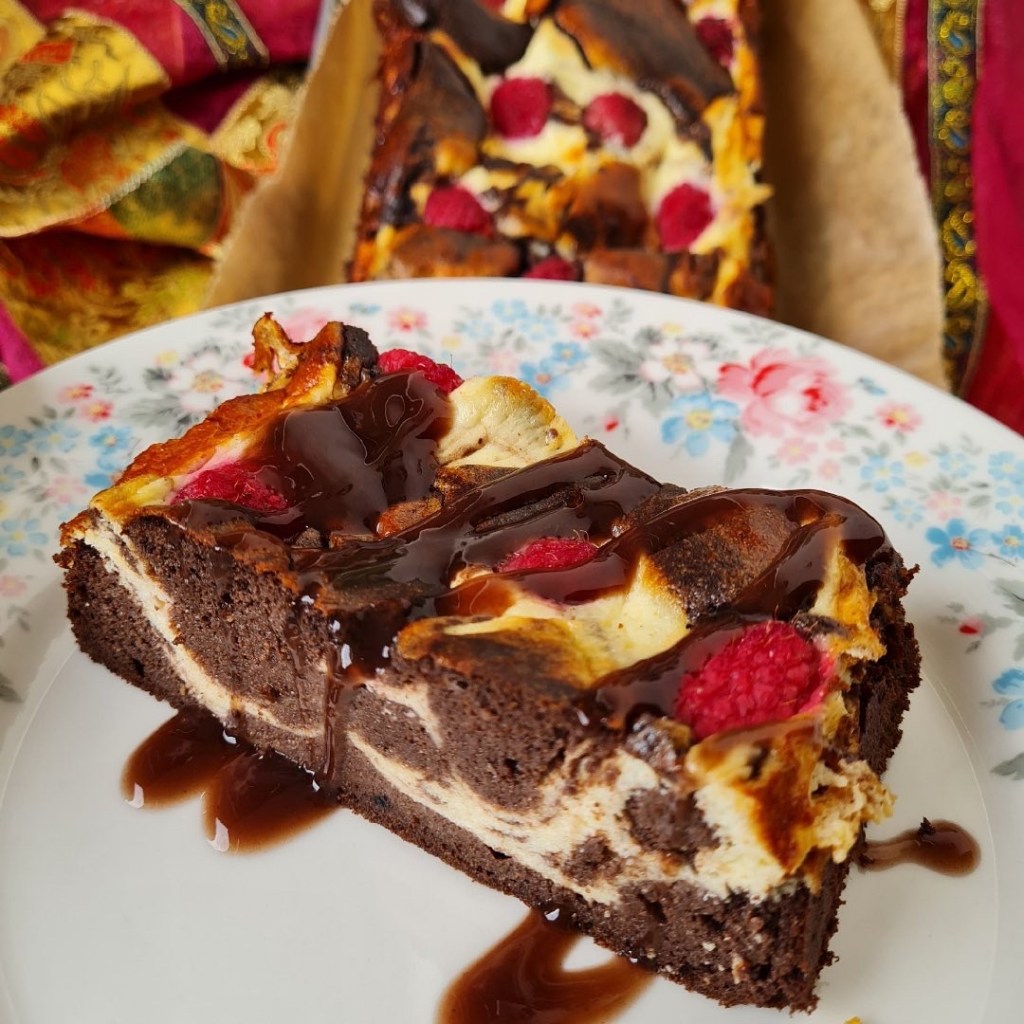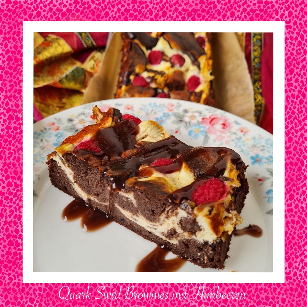 Quark Swirl Brownies mit Himbeeren