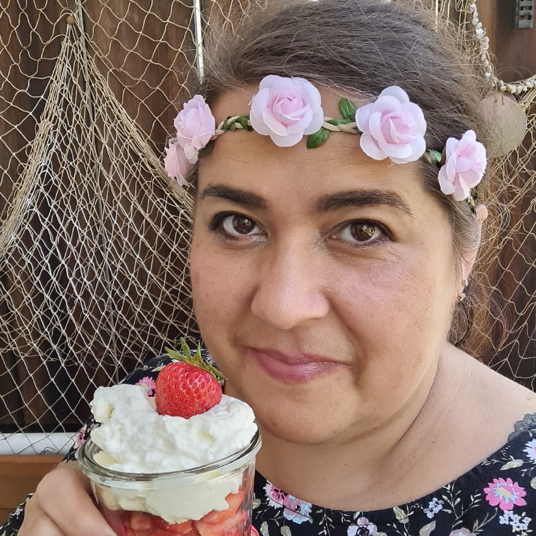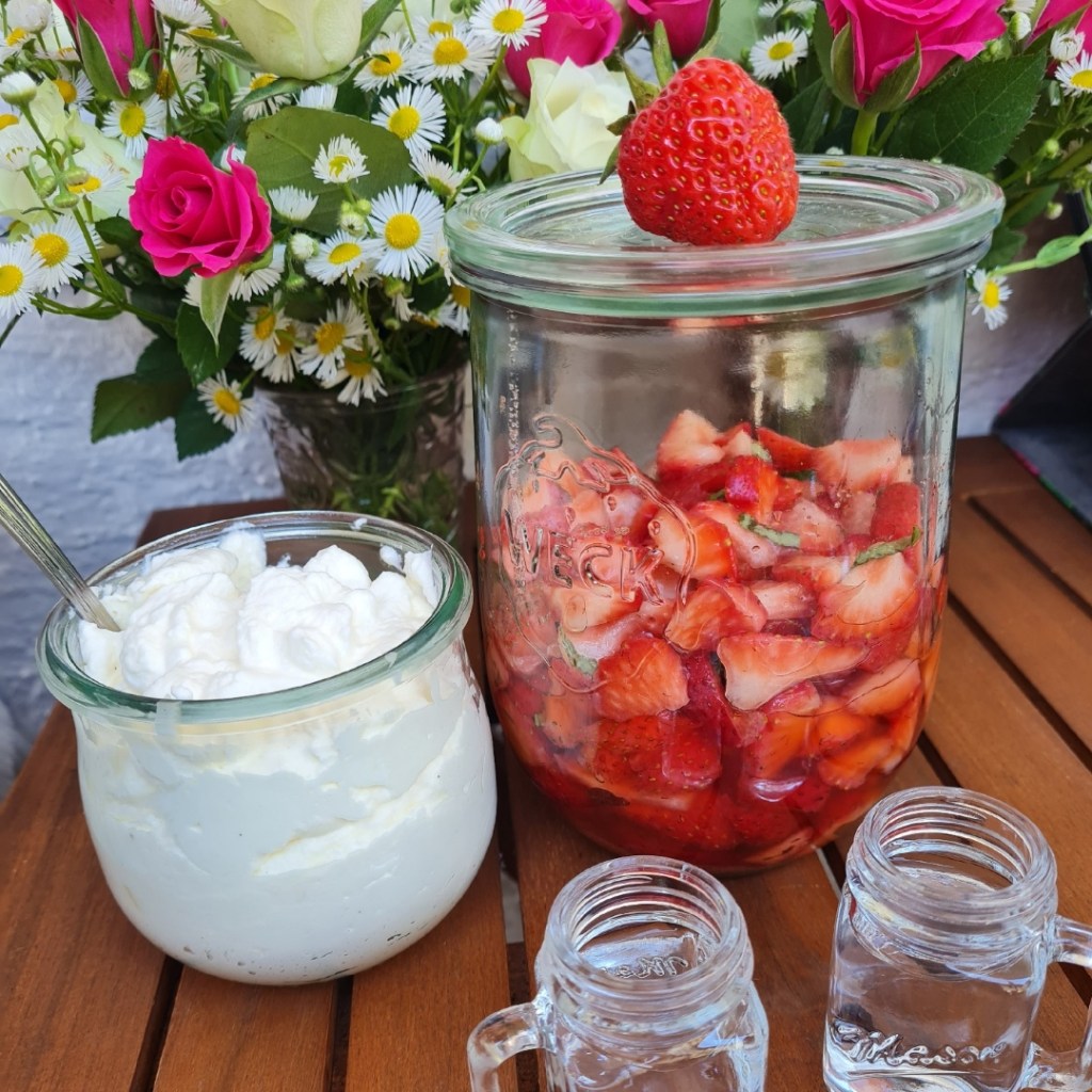 - beschwipste Basilikum-Erdbeeren mit Vanillesahne