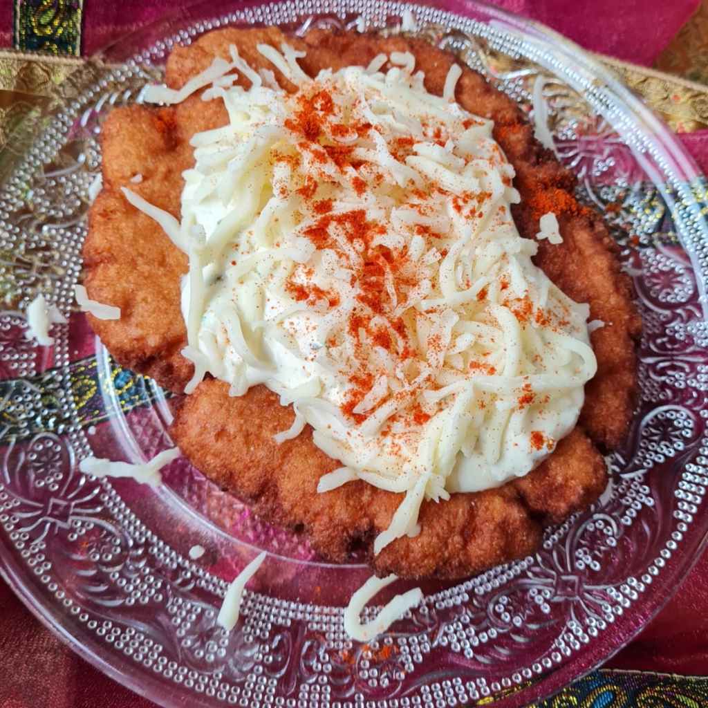 • Die Teigfladen frittierst du in der Pfanne bei mittlerer Hitze von jeder Seite 2-3 Minuten.