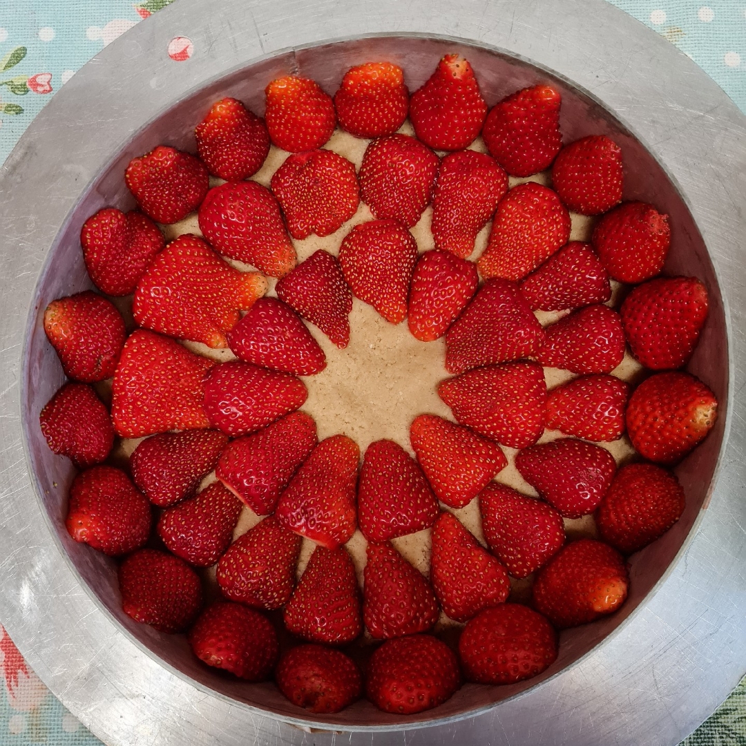 - Die Erdbeeren waschen, putzen und in Stücke schneiden.