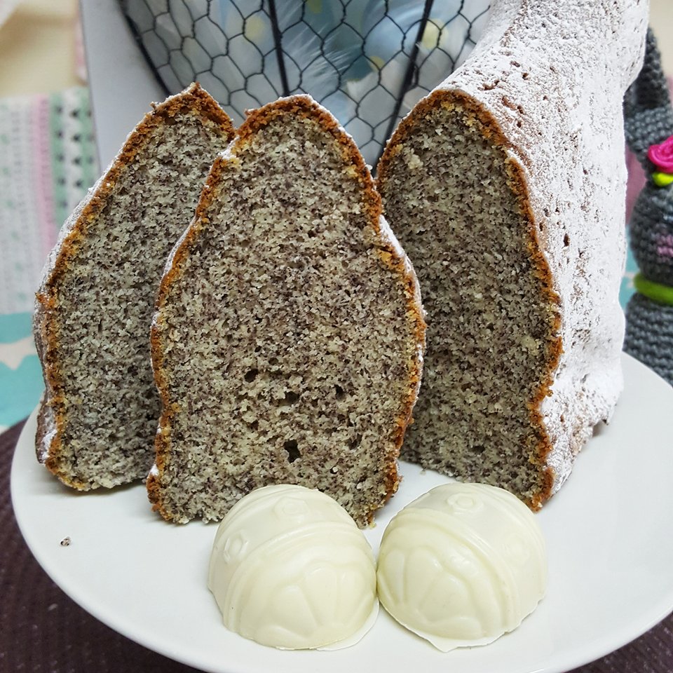 Diesmal kommt er in einem schlichten Quark – Mohn Gewand und mit einem Hauch von Eierlikörgeschmack. Für Ostern ist das die optimale Kombination.