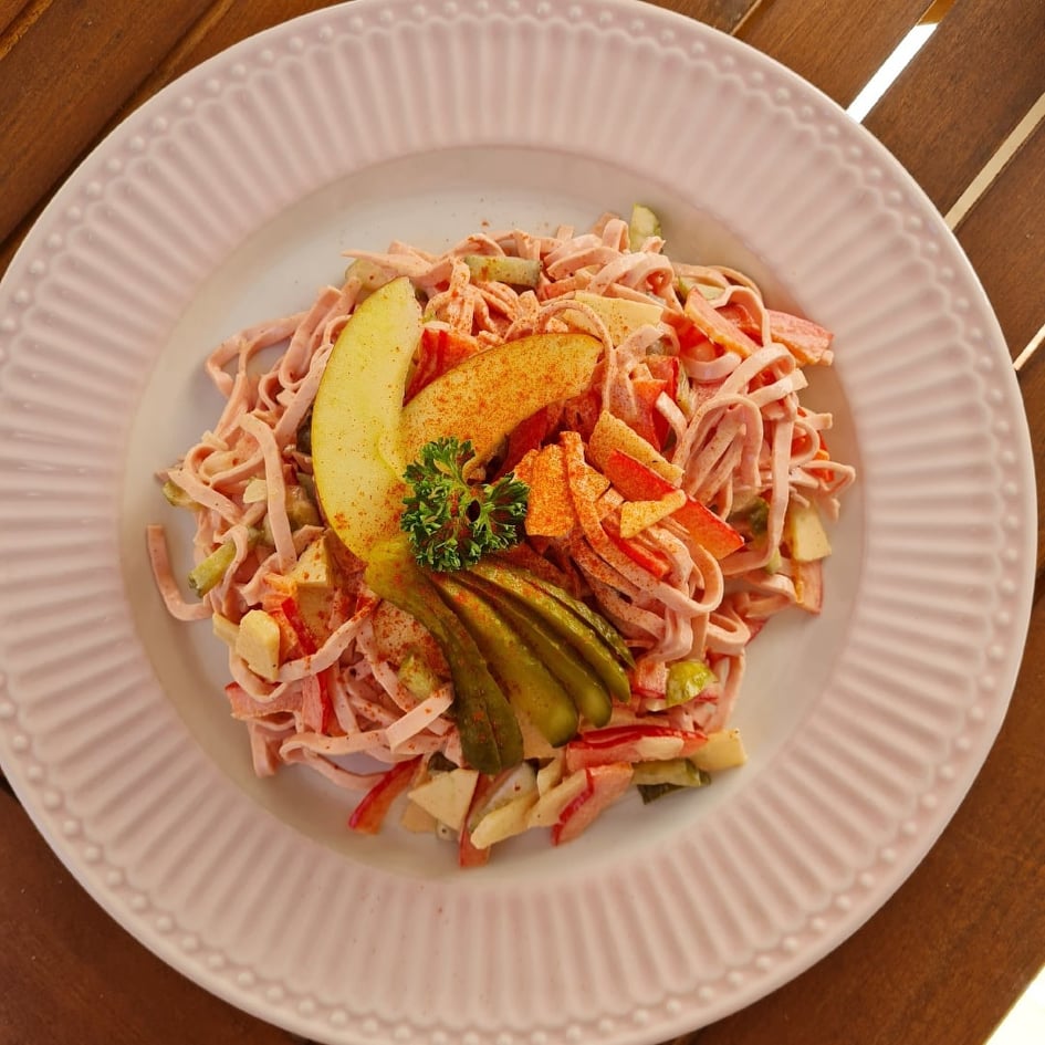 Erzähl mir gerne, wie dir der Budapester Fleischsalat geschmeckt hat.