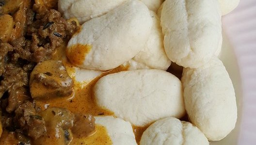 Ihr könnt die Gnocchis mit einer Tomatensoße und Parmesan servieren…oder so wie ich es hatte…mit einer Pilz Hack Rahmpfanne. Das war super lecker.